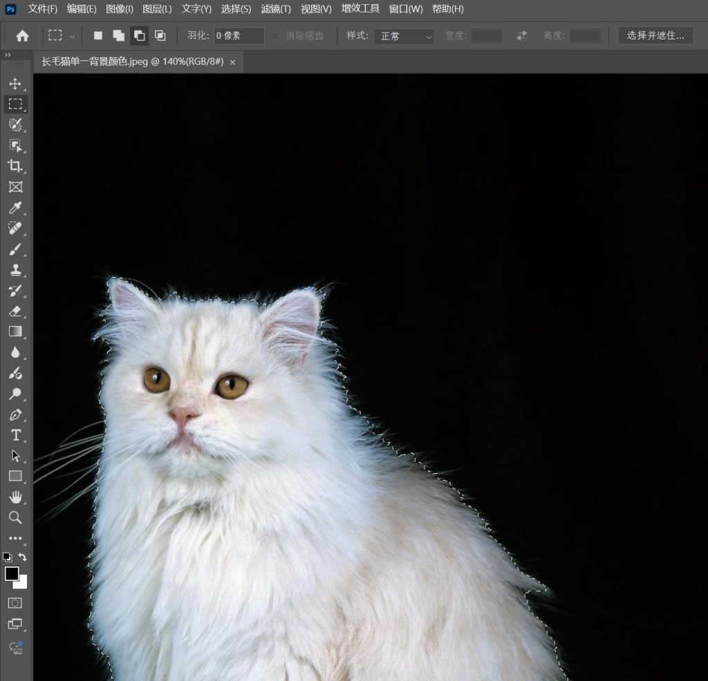 但是实际中,可能遇到人或者动物抠图时出现毛发炸毛的现象,比如下面的小猫咪,这3个工具比较模糊的边界和精细部位直接处理是不佳的