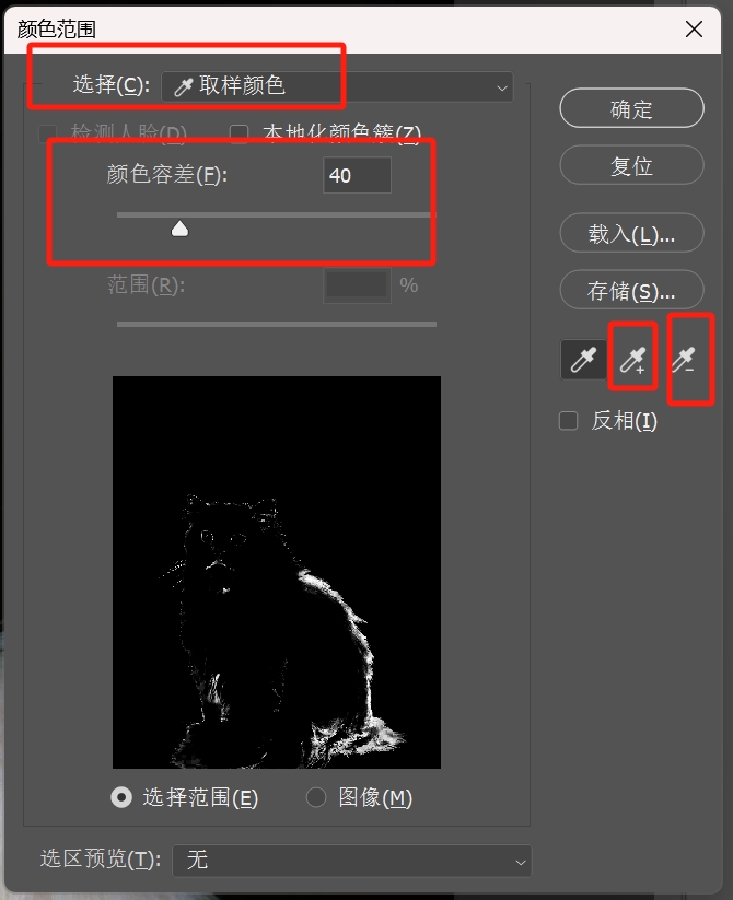 魔棒工具的进阶版,能够选择多个色彩范围或者去除色彩范围: