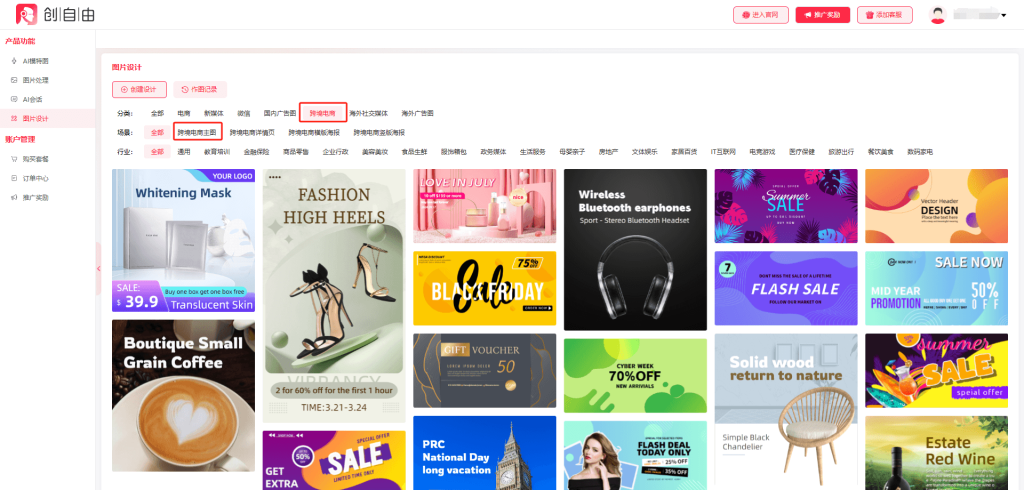 2.根据自己的需求,选择适合自己的图片素材模板(跨境电商-跨境电商主图);
