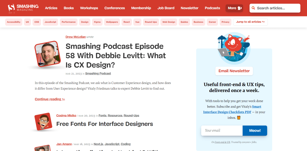 Smashing Magazine是一个以网站设计和开发为主题的平面设计图素材网站。它提供了有关网站设计和开发的文章、教程和案例,以及来自世界各地的优秀网站设计案例。此外,Smashing Magazine还提供了一些有用的工具和资源,可以帮助你提高自己的设计技能。