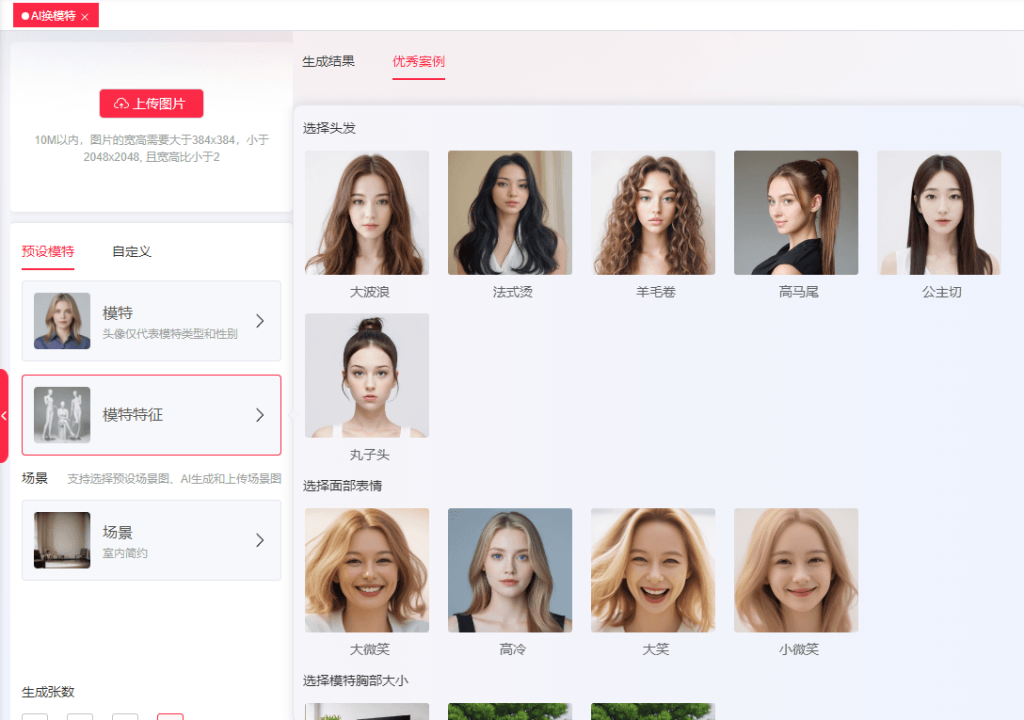 功能强大,可以将图像中的人物头像替换成任意模特头像,根据用户的要求自动生成高质量的图片,提供丰富多样的AI模型供用户选择。能为模特进行换装、换背景、换皮肤、换发型等操作。即时是新手也可以直接上手操作,简单方便,快速生成高质量的模特图。