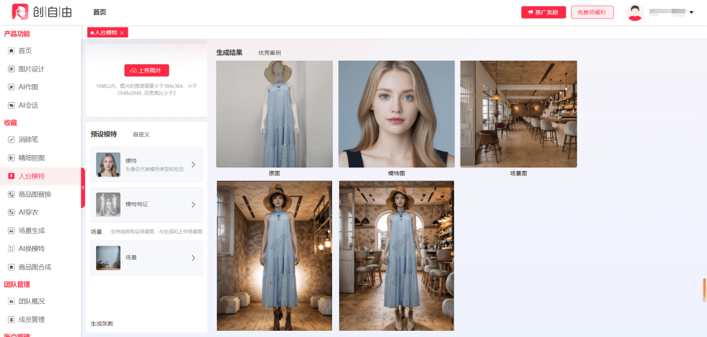 通过ai人台模特生成,不需要真实模特参与拍摄,且可以快速生成大量产品展示图片,节省商品图的准备时间,最主要的就是灵活性高,可以根据需求自由调整模特的外貌、体型、场景、表情等等,满足商家多样化的需求。