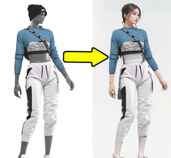在电商行业,大家都知道,一款新产品上线之前,先要请模特拍摄效果图,同一个模特可能会给不同的店铺拍摄不同的模特商品效果图,现在模特市场也是非常卷的,一个优质的模特可能一天需要拍摄上千张照片,而商家付出的就是时间成本、场地费、模特费、摄影师、化妆师、修图师等方面的费用,综合而言成本还是非常高的。