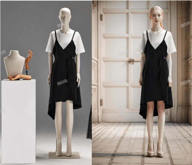 它提供的AI人台模特生成真人操作比较简单,用户只需要上传人台模特试穿照,选择模特头像,系统将为您生成真人试穿照,具体操作如下: