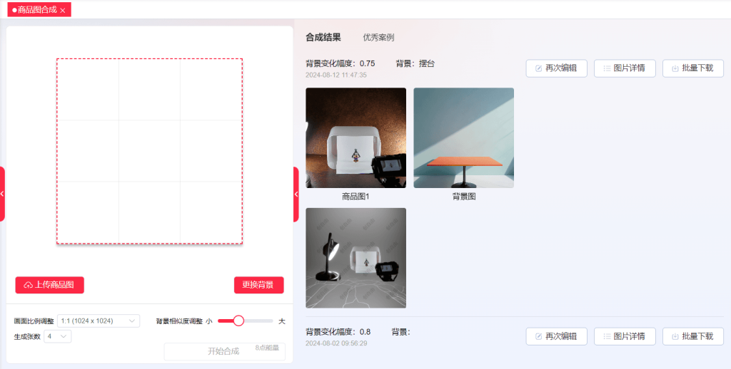 科链矩阵的AI商品图合成工具,操作简单,只需要上传商品背景图、以及多张商品图,系统即为您合成一张高度融合的图片,无任何拼接痕迹。