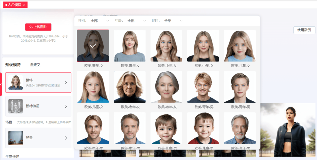 科链矩阵是一款在线AI工具,其中的一款产品就是AI人台模特生成真人,用户只需要上传自己要试穿的衣服图片,然后选择模特头像,系统就可以自动为你生成真人试穿照,简单方便。
